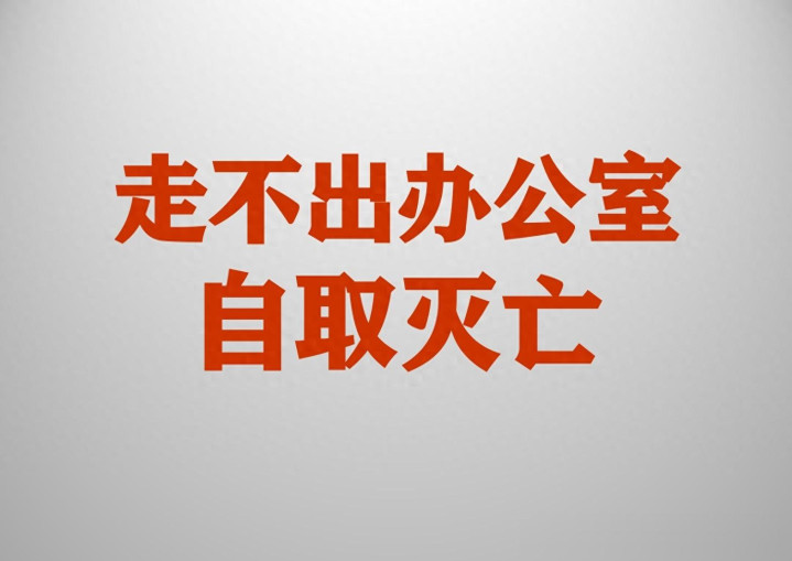 很多人可能会觉得这种现象很常见,也算不上什么问题,如果你所在的企业一把手几乎常年都窝在办公室里出不来,那你自己扪心自问一下,你企业当下的状况具体是什么样的,大概率是内部问题重重、外部没有机会,要不就是处于温水煮青蛙不死不活的状态中,疲于奔命且走不出困境。所以这是一个很常见且很严重的问题,走不出办公室的企业一把手,大概率在自废武功,走不出办公室往往会造成,企业内部封闭保守、失去创新能力,鸵鸟般一头扎到沙子里,感知不到也看不到外部市场环境和客户需求的变化,自以为知道,其实根本不知道。