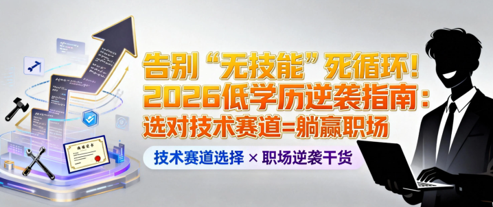 大家好,我是常年泡在互联网圈,见证过不少普通人靠技术逆袭的达人~ 今天聊的这个话题,可能戳中很多低学历朋友的痛点:没文凭、没技能,只能在底层岗位反复内耗,越干越迷茫。先跟大家拆解下标题里的核心逻辑,再解答大家最关心的几个疑问👇
