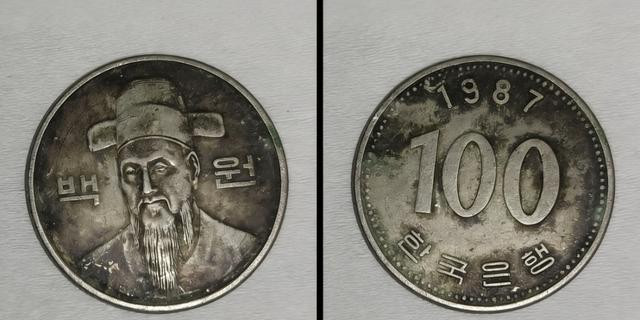 上次无意中淘到一枚1987年的韩国100韩元硬币,外表没什么特别,但研究之后才知道,这枚硬币是李滉(退溪)标志性时期的最后一批流通币之一。