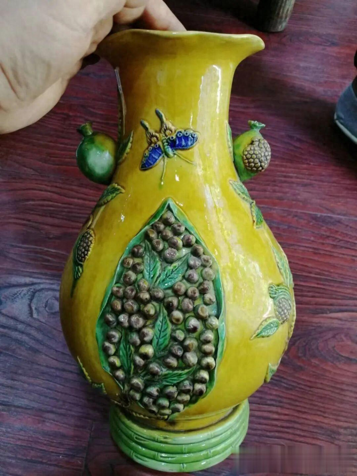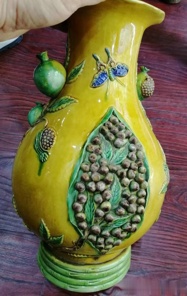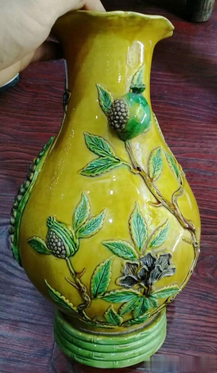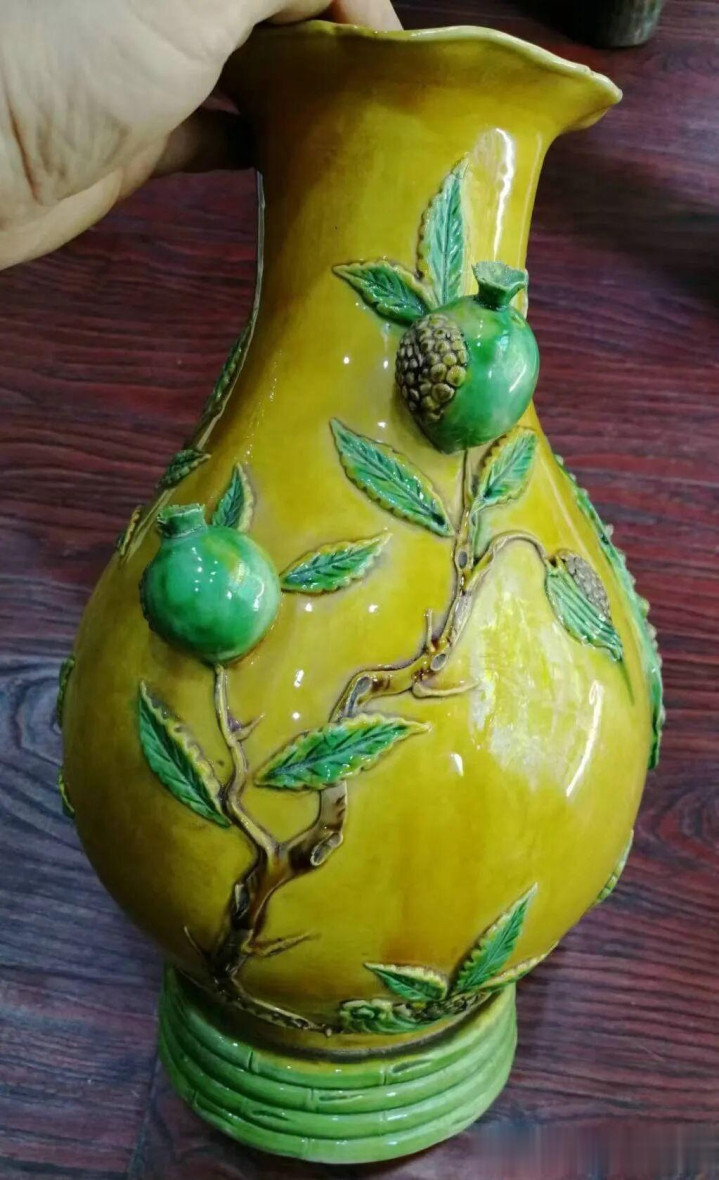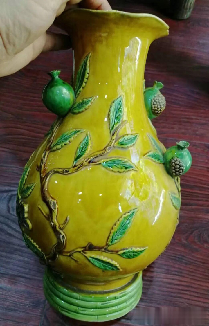 开云app在线下载 藏品第43-清晚黄釉雕塑石榴花卉瓶