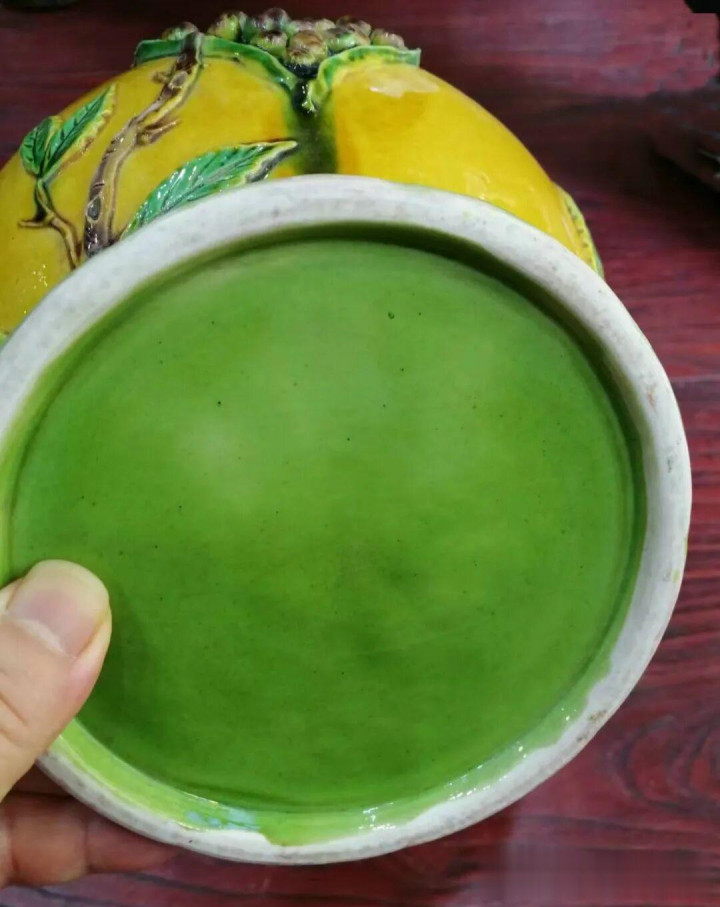 下边是一件清晚黄地雕塑石榴花卉等花口瓶,底足有三节竹节编的装饰,黄釉纯净,开云app在线下载玻璃光强,迎面有蛤蜊光。东西完整漂亮。